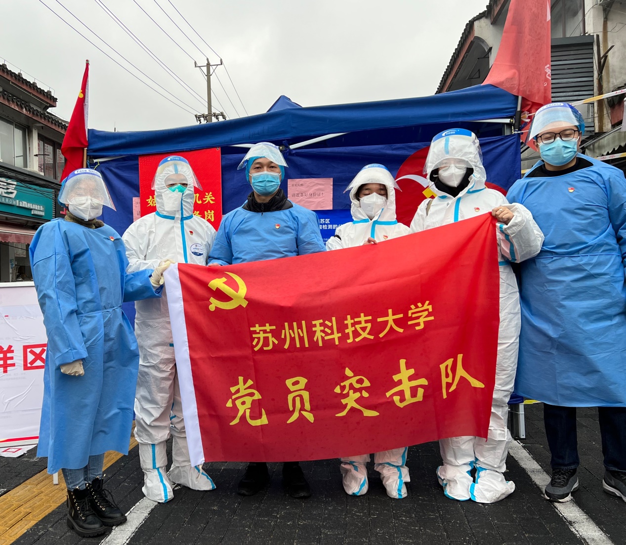 首批4名教师党员前往姑苏区金阊街道金门社区和相城区北桥街道庄基村开展志愿服务,支援核酸检测工作。清晨6点,教师党员们早已到达核酸检测现场,负责人员引导,信息登记、秩序维护等工作。“请大家戴好口罩,间隔一米,有序排队!” 他们不惧寒意、冲锋在前,热心指引居民前往检测点,维持好现场秩序,耐心回答居民提出的各类问题,充分发挥党员先锋模范作用,用实际行动践行初心使命。