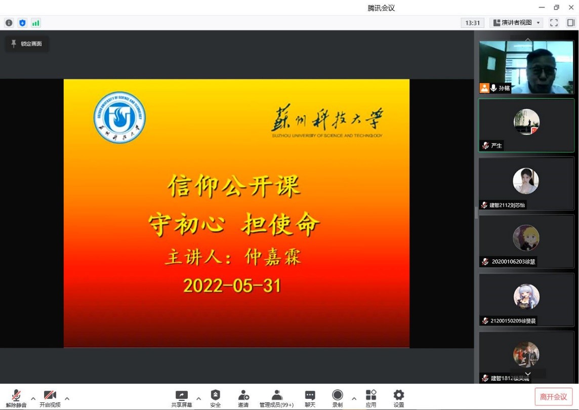 的青年人一些人生建议:1.热爱母校。苏州科技大学是一所朝气蓬勃,学术氛围浓厚的综合性大学,学校不仅为在校学生搭建多种学术平台,也为各行各业的发展输送大量的优秀人才。作为苏科学子,应当时刻牢记热爱母校、以母校为荣。2.热爱自己的专业。当代青年需要深刻认识到所学专业的意义,要具有家国情怀,将自己的职业规划与国家的发展紧密结合。3.青年要有时代责任担当。告诫当代青年要不怕苦,能吃苦,肯吃苦;在专业学习上要花时间,深挖掘,多探索,只有这样才能在人生道路上有所建树。