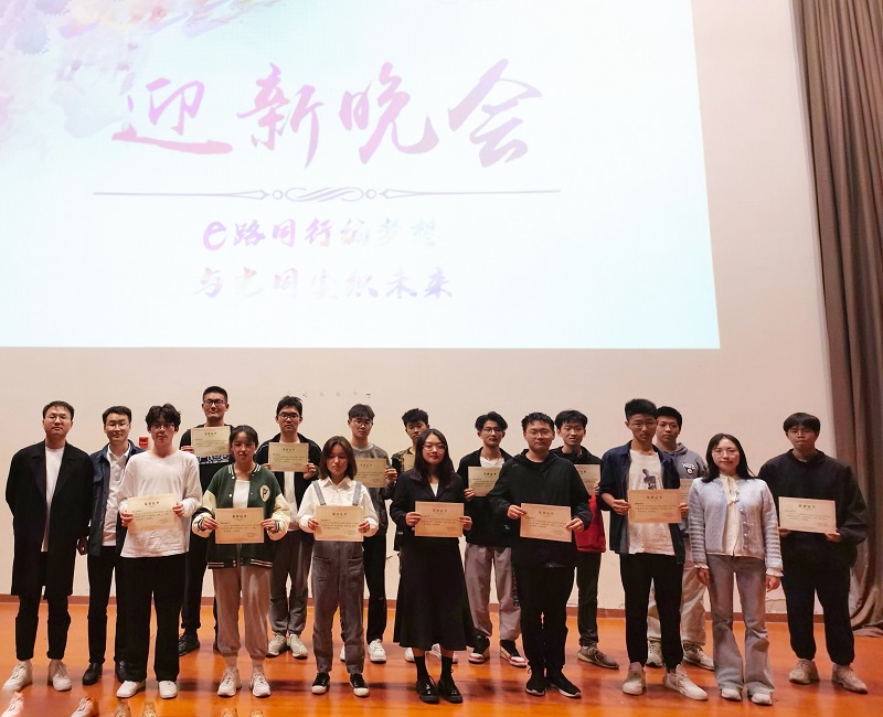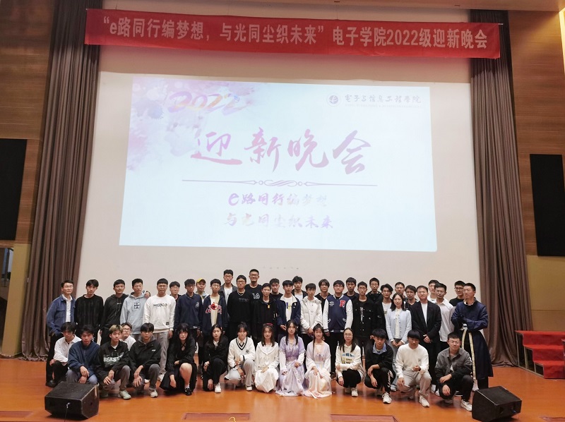 在图书馆报告厅举办了2022级“e路同行编梦想,与光同尘织未来”迎新晚会。梁德强、汤恒涛、苏馨三位辅导员老师与新生们欢聚一堂,共同观看精彩演出,尽享视听盛宴。