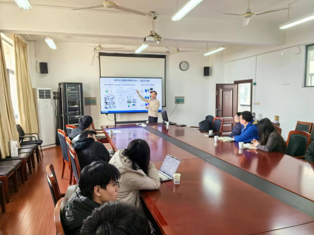 进行学术交流,并做了题为“AI+材料,打造原子级材料‘智’造”的报告。我院院长胡伏原、副院长吴宏杰等20多名老师和学生到场聆听。