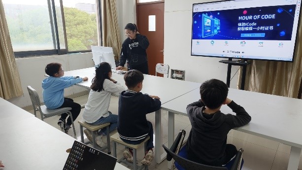 本次活动分为智慧城市科普资源参观与体验以及ICode编程体验两部分。在智慧城市科普资源参观与体验环节,学生们亲身体验了外骨骼机器人的神奇魅力,还领略了智能跌倒检测系统的匠心设计。随后,学生们观赏了机器人编舞、无人机编队等人工智能技术的应用成果,深刻感受到科技带来的前所未有的变革。在ICode编程体验环节,学生们在老师的指导下,亲自动手完成了“ICode编程一小时”活动,深入了解编程的乐趣与挑战。