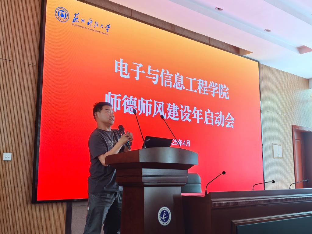 副书记兼副院长杨波涛宣读了违反《新时代高校教师职业行为十项准则》典型案例;院长助理吴征天传达了《苏州科技大学“师德师风建设深化年”实施方案》。
