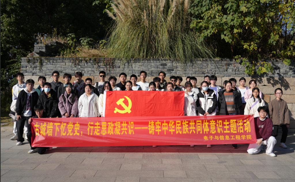 活动以习近平新时代中国特色社会主义思想为指导,深入贯彻党的二十大关于铸牢中华民族共同体意识的重要论述,依托相门古城墙的历史与红色资源,创新“行走的思政课”模式,融合“党史学习+文化体验+专业融合”三大板块。师生沿城墙溯源,观摩博物馆文物、研读红色步道党建宣传内容,感悟革命先辈奉献精神与中华民族共同体形成的历史必然;雍昊带领重温入党誓词,各民族学生代表分享感悟,“石榴籽”般的团结氛围浓厚。党史知识抢答、传统砌砖体验等活动寓教于乐,师生还走进相门元宇宙数字文化基地,结合电子信息专业探讨红色资源数字化保护思路,实现爱国情与专业实践深度融合,活动获广泛好评。