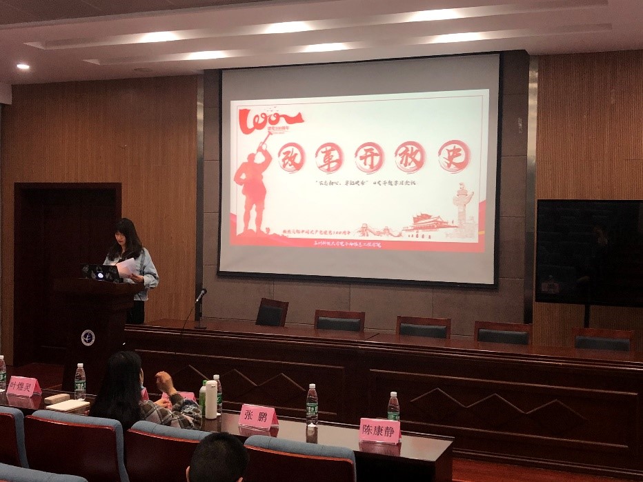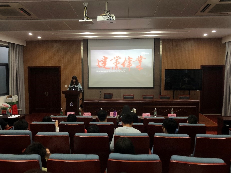 蒋敬敬以生动故事为开头,为党员们展现了我党在新民主主义革命时期、社会主义革命和建设时期、改革开放和社会主义现代化建设新时期艰辛而辉煌的风雨历程,阐述了我党的优良传统和革命精神,并说明了学习“四史”在中国特色社会主义新时代各项建设中重要意义与积极作用。活动最后,所有成员共同观看了经典影片《建党伟业》,再度回顾了中国共产党成立的伟大历程。