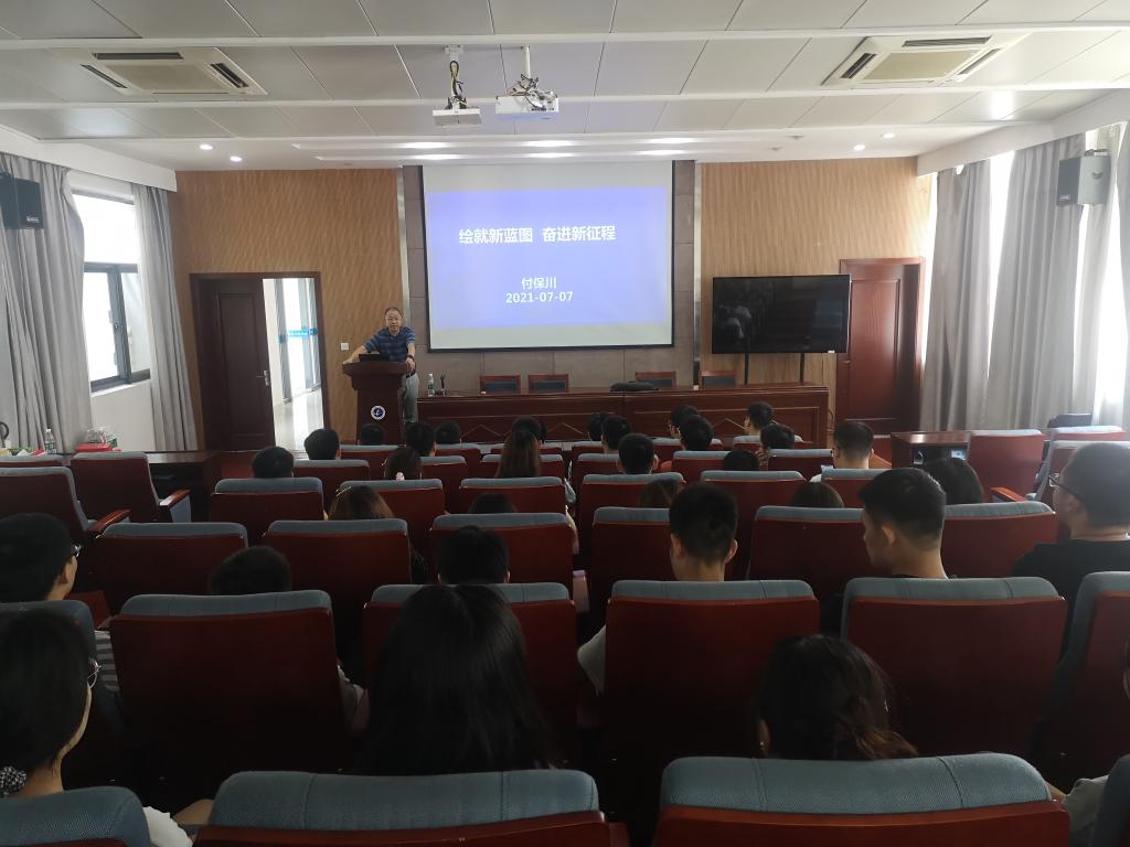 院长付保川走上讲台,在电子楼A108为20电子研究生上了一场题为《绘就新蓝图 奋进新征程》的思政课。
