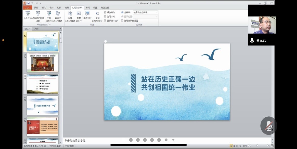 张兄武书记以《站在历史正确一边共创祖国统一伟业》为题,从认清历史发展大势,认清“台独”本质和危害,认清外部势力干涉图谋,认清广阔机遇和前景四个方面进行讲解。他强调,新的征程上,在中国共产党的领导下,作为中华儿女,同学们要和衷共济、团结向前,坚决粉碎任何“台独”图谋,共同创造祖国完全统一、民族伟大复兴的光荣伟业。