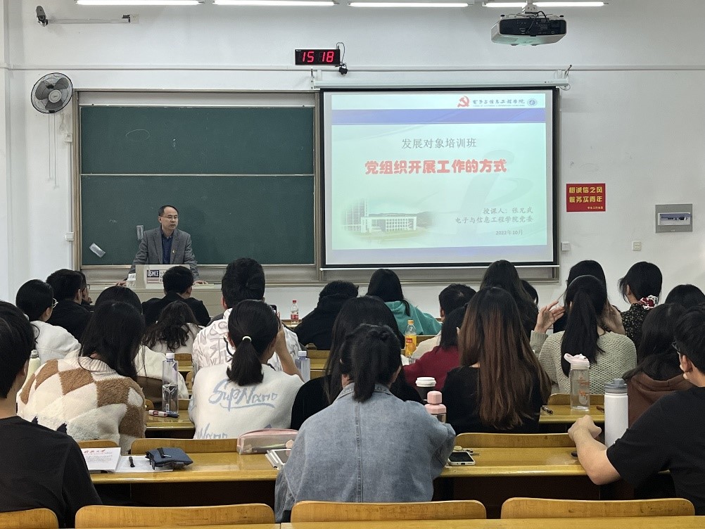 2022年10月19日,环境、电子、教育、数学、物理、地测开云体育 分党校2022年秋季发展对象培训班开班。开云体育 党委书记张兄武以“党组织开展工作的方式”为题,为发展对象上党课。