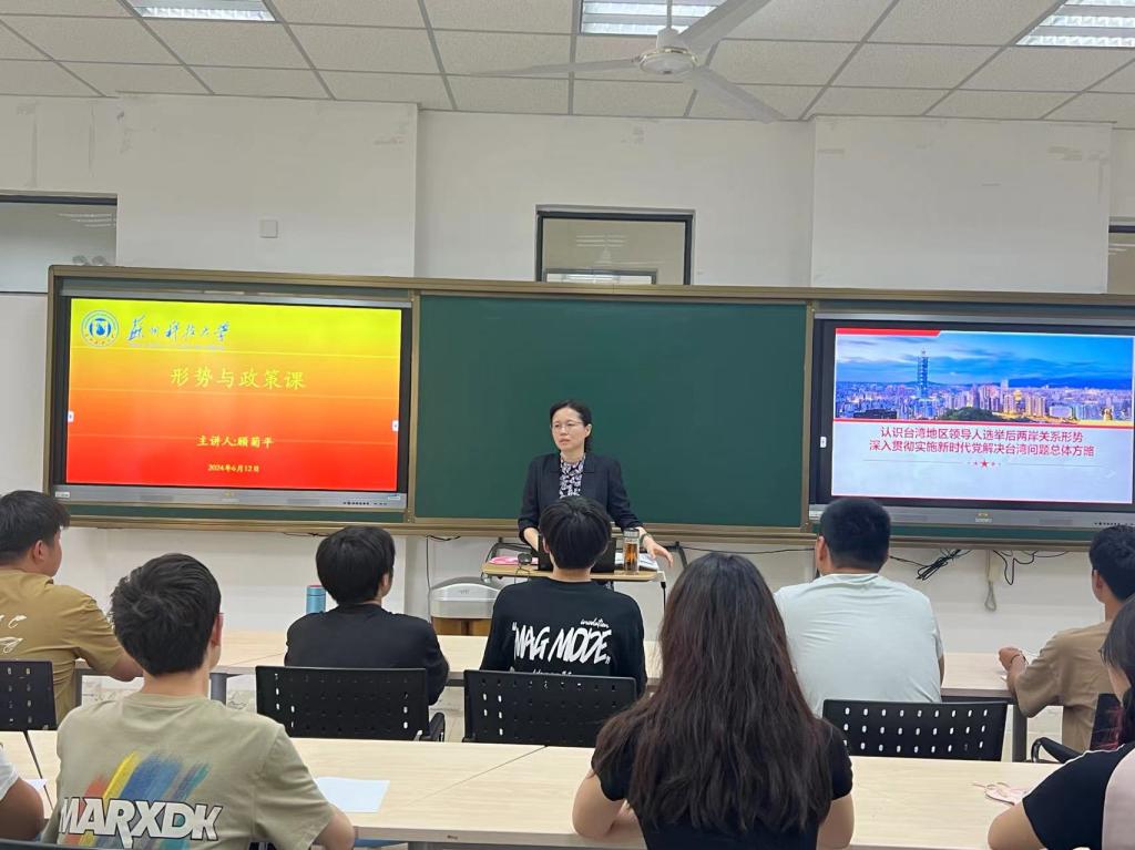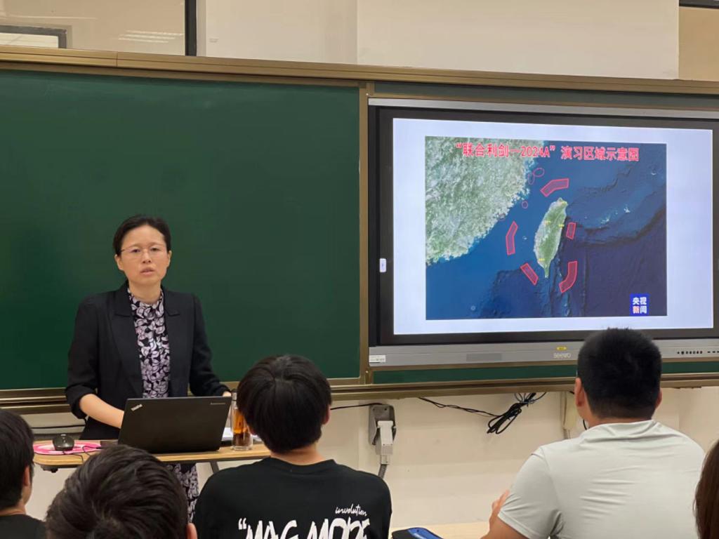课堂上,顾菊平以问题为导向进行启发式、互动式授课,围绕“中华民族伟大复兴”“历史经纬”“法理事实”等关键词展开,全面详细阐述了实现祖国完全统一是大势所趋、大义所在、民心所向。顾菊平指出,牢牢把握两岸关系的主导权和主动权,扎实推动两岸关系和平发展,需要海峡两岸同胞牢固树立中华民族共同体意识;要坚决反对外部势力干涉,坚决遏制“台独”分裂势力、全面贯彻落实新时代党解决台湾问题总体方略,扎实推进祖国和平统一。