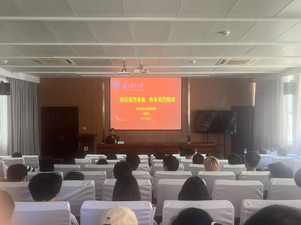 邀请苏州市烈士陵园管理处进行了“铭记英烈事迹,传承英烈精神”党纪学习教育主题宣讲,院党委书记章鸣、苏州市烈士陵园管理处主任杨一渠、院全体党委委员、教师党支部书记和部分学生参加活动。