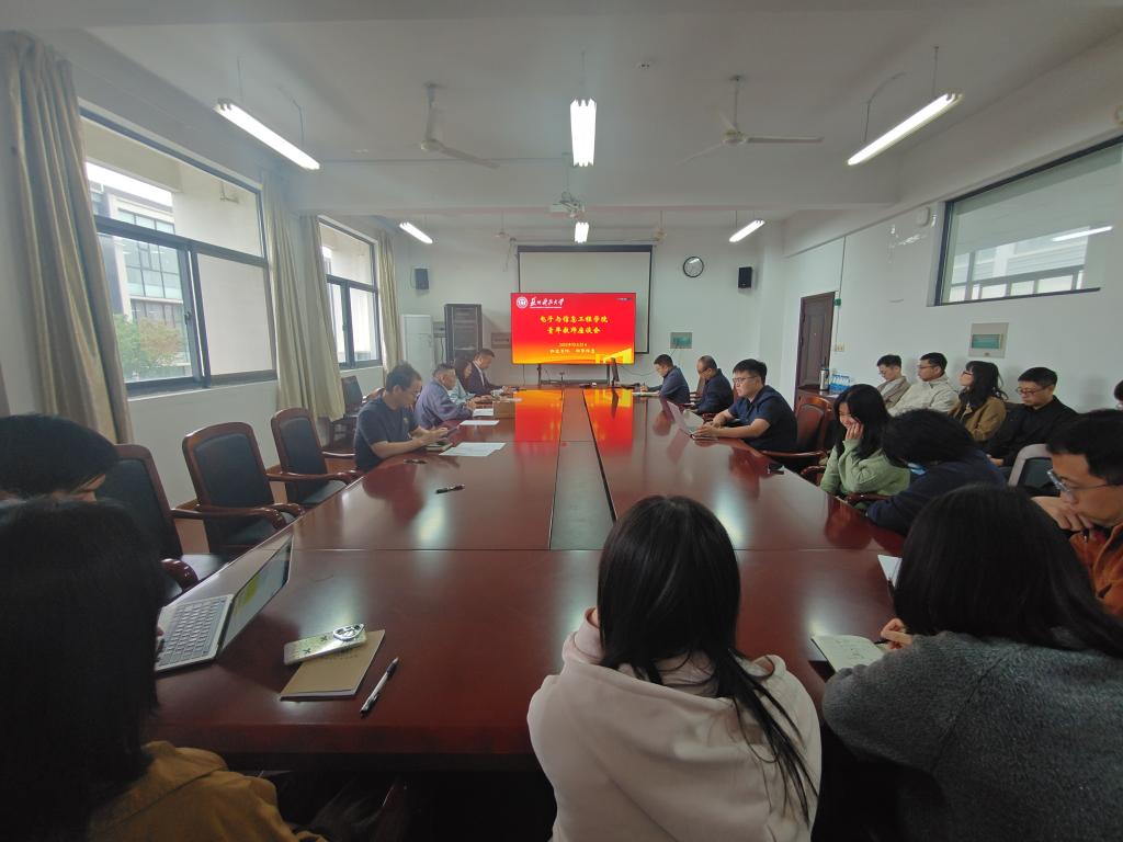 座谈会上,仲嘉霖结合自身电子学科教学科研与管理经验,针对青年教师关注的课程设计、科研攻关方向等问题分享心得,强调 “要扎根学科前沿,更要立足学生成长需求,让知识传授与实践创新同频共振”。青年教师们踊跃提问,就教学难点、科研方向等话题与仲嘉霖深入交流,现场氛围热烈融洽。