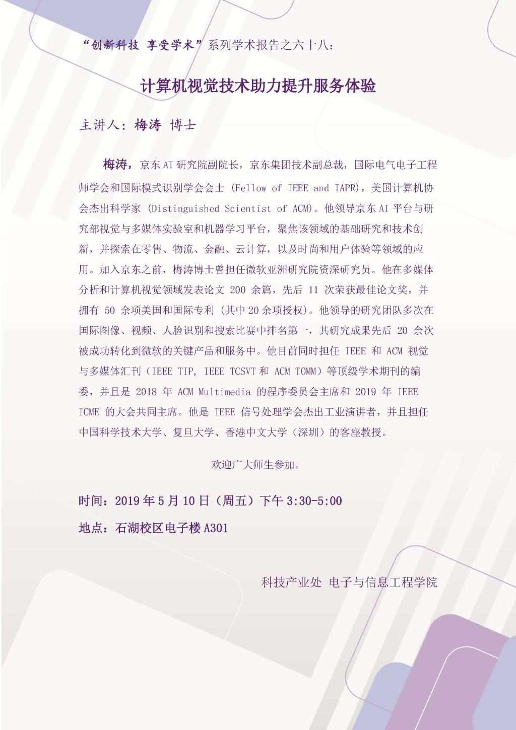 “创新科技 享受学术”系列学术报告之六十八:计算机视觉技术助力提升服务体验