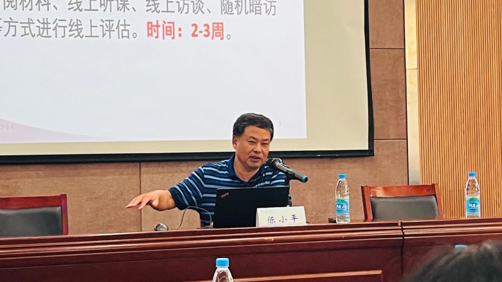 副院长、审核评估进校专家陈小平教授作了报告。陈教授从审核评估指导思想、审核评估工作程序、审核评估指标体系、开云体育