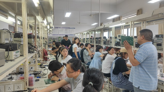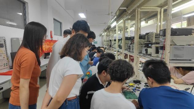 “电子电路教研组”是服务于本校电子、通信、电气、建智等电类专业的电路课程(群)的教学实施而建立的基层教学组织,于2022年立项校级特色示范基层教学组织。团队深刻贯彻《教育部关于一流本科课程建设的实施意见》(教高〔2019〕8号)精神,“注重在课程设计、教学内容、教学方法、评价形式上的创新,强调对学生能力、素质的培养”“鼓励产教融合”,于6月19日下午,开展了“省产教融合一流课程现场观摩”公开教学活动,教研组及合作企业教师10余人参加了本次教研活动。