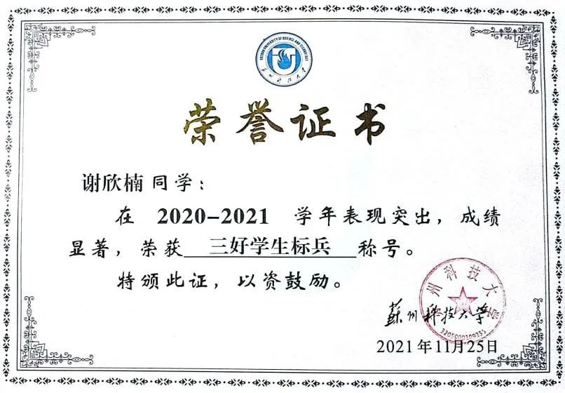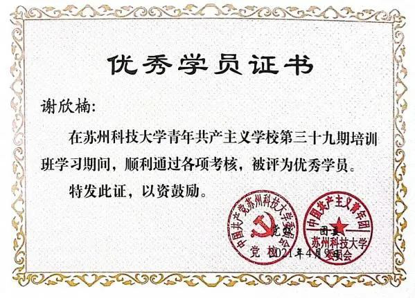 为实现理想走进来,为服务社会走出去。学习之余,谢欣楠积极尝试各种角色,作为通信2112的班助,她尽职尽责,在完善自我的同时,帮助老师带领学弟学妹尽快适应大学生活,找到目标轨道;作为云端支教小老师,她在帮助小朋友完成假期任务的同时,也在每一次备课、讲课、批改作业过程中体会到教师的不易;作为疫情防控志愿者,她严格核查过往人员行程卡、健康码,维护核酸检测队伍秩序,以微薄之力共筑疫情防控“温暖防线”;作为一名中共预备党员,她积极践行习近平总书记对新时代青年“以青春之我、奋斗之我,勇担时代重任”的青春寄语,认真完成党组织交代的各项工作,努力为同学们服务。