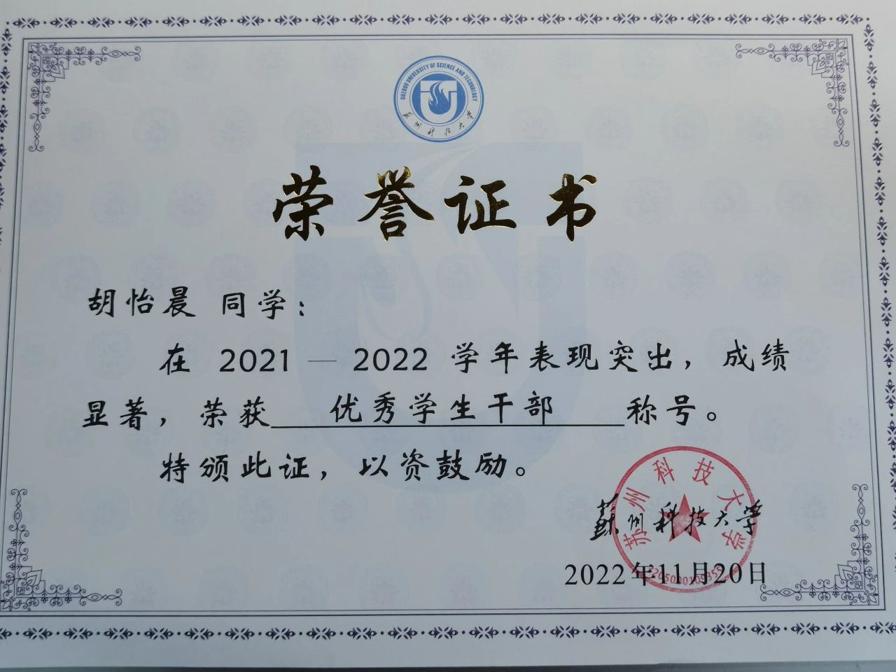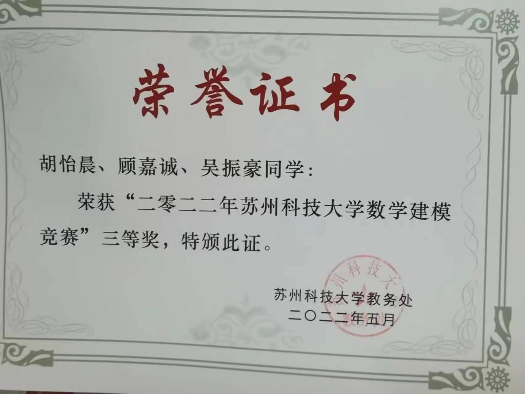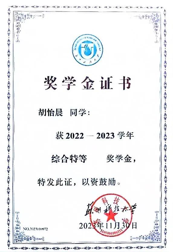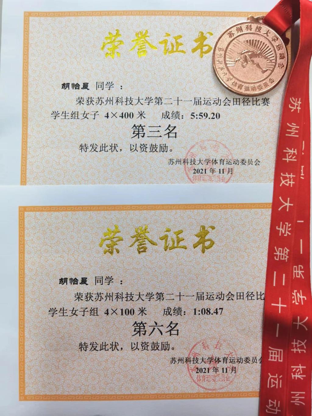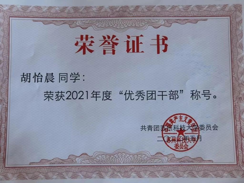 “奋斗是青春最亮丽的底色,行动是青年最有效的磨砺。”在大学四年的学习与生活中,胡怡晨始终秉持这一点。无论是担任校级和班级职务,还是参与各种竞赛与活动,她总是勇于尝试自己感兴趣的事物。胡怡晨作为校新媒体记者团的一员,在“苏科大团委”公众号上发表多篇推文,并参与2021年苏州科技大学毕业视频脚本编写;担任班级团支书一职,带领班级获得“五四红旗团支部”和“省级优秀班集体”荣誉称号;加入开云体育
